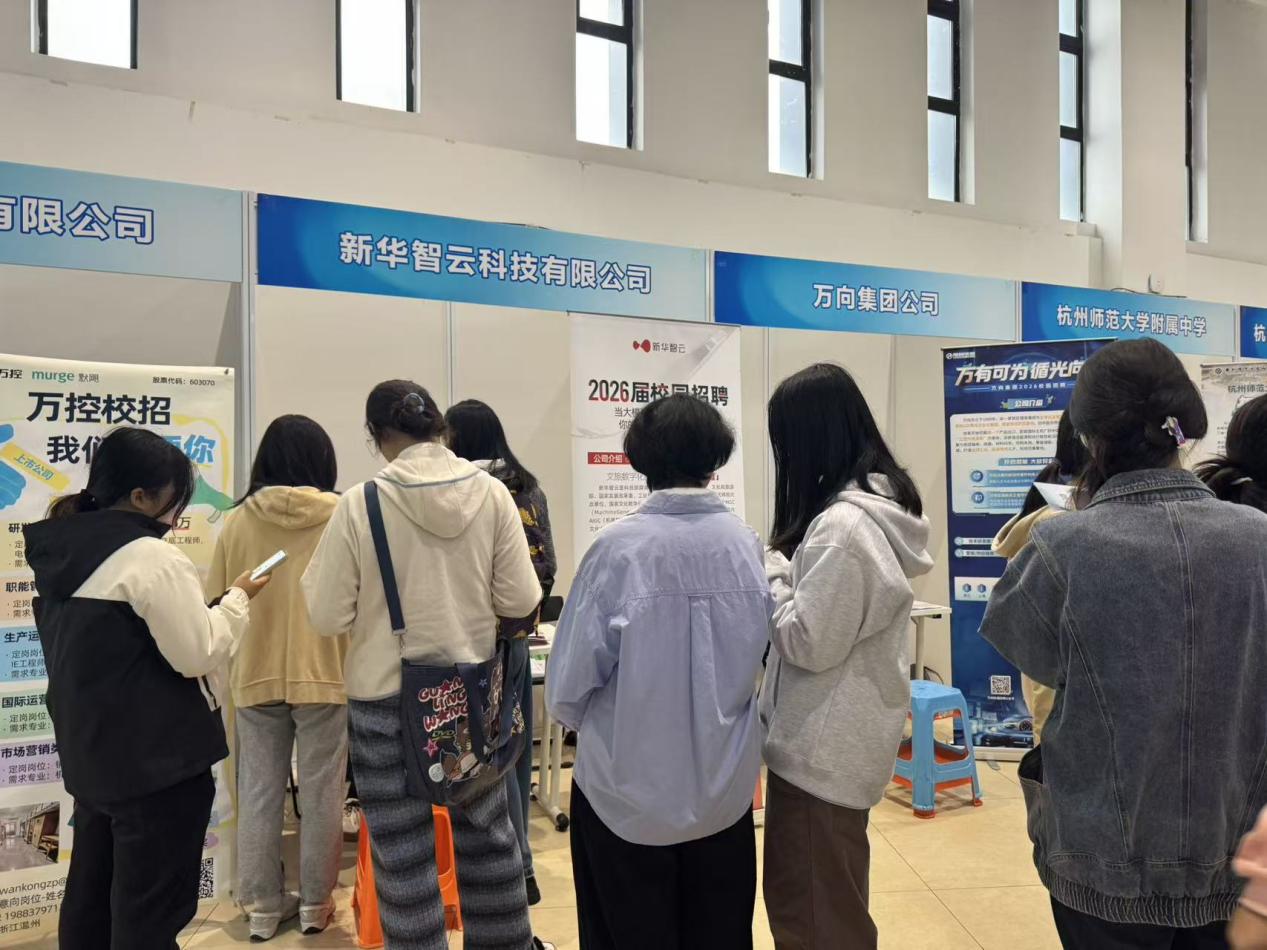 下午1时30分,招聘会正式开始。参与本次招聘会的用人单位涵盖教育培训、科技、金融、制造业、建筑工程等多个领域,包括江南大学、中建八局浙江建设有限公司、杭师大附中、天元公学、万向集团、新华智云等多家优秀用人单位参会,向文科毕业生们提供教师、行政管理、市场营销、运营、管培生等多种类型的岗位。