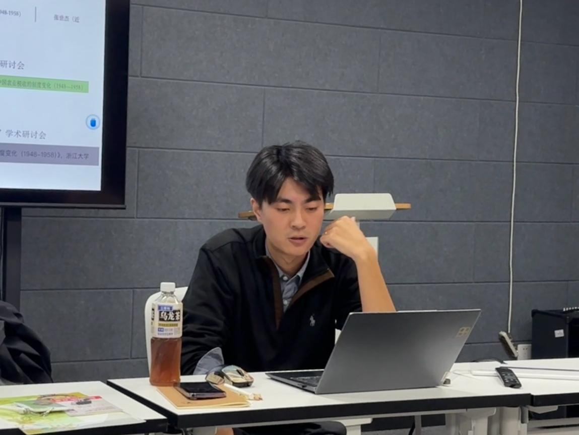 分享会之初,张世杰同学结合自身研究与写作经验,围绕“论文写作与学术成长”展开系统讲解,从选题方法、学术规范、投稿策略等多个方面为同学们提供了宝贵建议。在选题方面,他借鉴前辈学者的经验,指出要遵循“三新”原则,即新史料、新观点、新理论,强调学术研究要勇于突破“四就”局限,不就经济史讲经济史、不就事论事、不就近代谈近代、不就中国谈中国。他鼓励同学们在研究中做到“横通、中通、纵通”,拓展视野,融会贯通。在学术规范方面,张世杰强调了学术逻辑与写作规范的重要性,提醒同学们在追求深度的同时,也要注意表达的清晰与严谨。