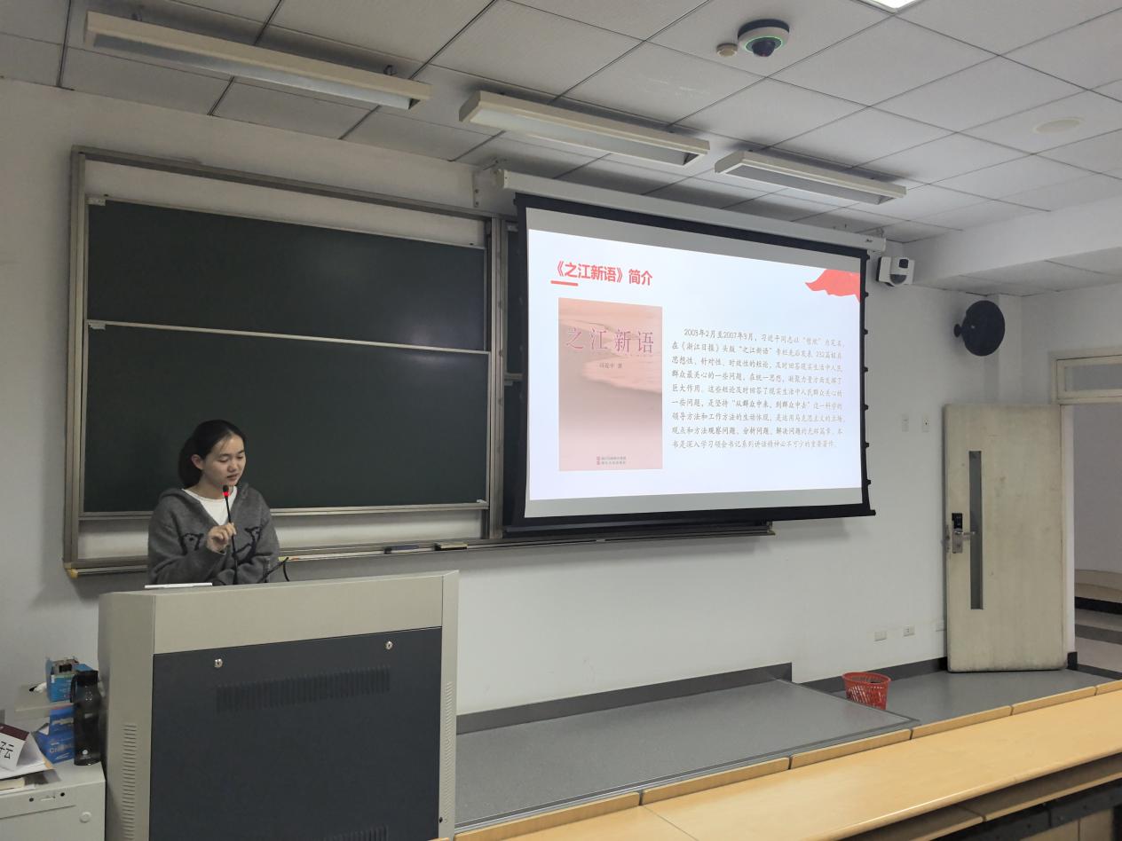 最后,2301班团支书张灵眺同学领学《之江新语》核心内容。领学过程重点解读了新闻宣传、哲学社会科学、互联网治理三大领域的核心观点,强调社科工作者应坚守“真、情、实、意”四字要求,要始终坚持马克思主义指导地位。研读《面对面做好群众工作》、《小事小节是一面镜子》等经典篇目,进一步提升了同学们的政治素养与理论水平,为同学们成长成才提供了强大思想指引。