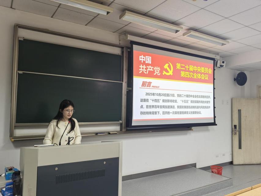 2401团支部团支书张东琪同学带领大家学习二十届四中全会精神。作为担当时代复兴使命的浙大学子,应以全会精神为指引,将个人成长融入国家发展大局,立志做有理想、敢担当、能吃苦、肯奋斗的新时代好青年。