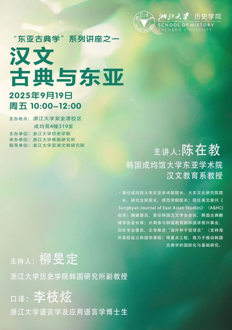 地 点:地点浙江大学紫金港校区成均院4幢319室