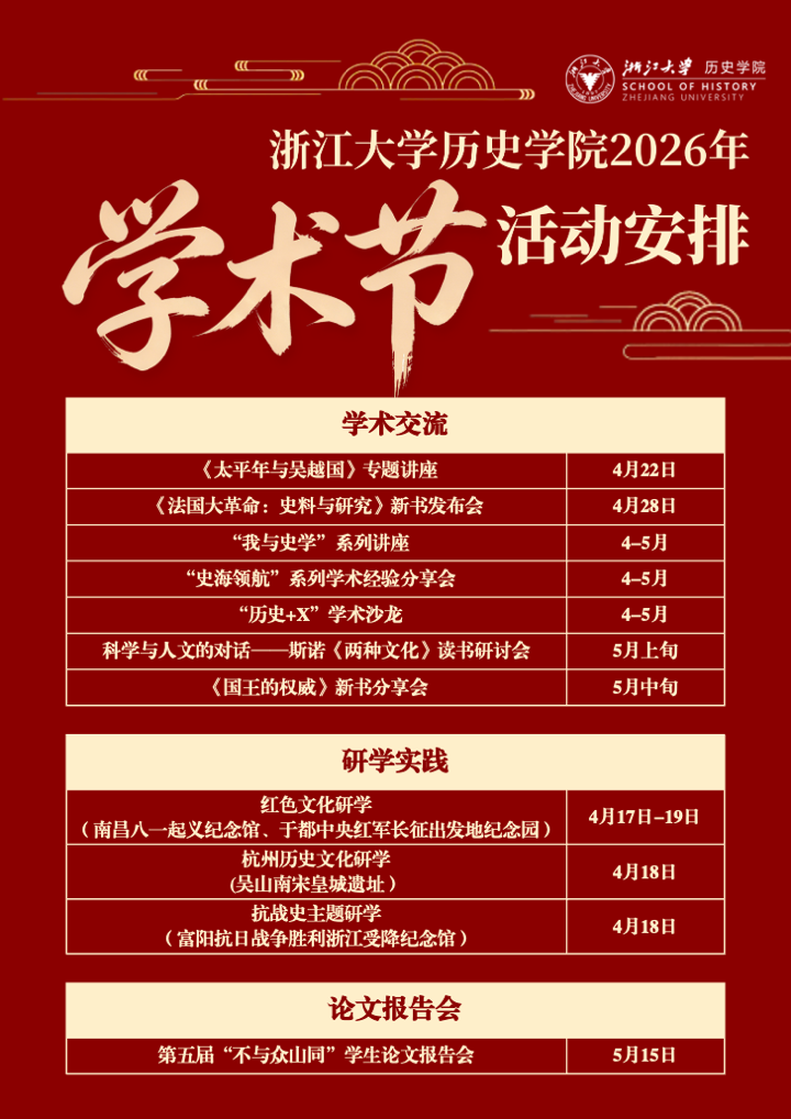 通知丨浙江大学历史学院2026年学术节活动安排