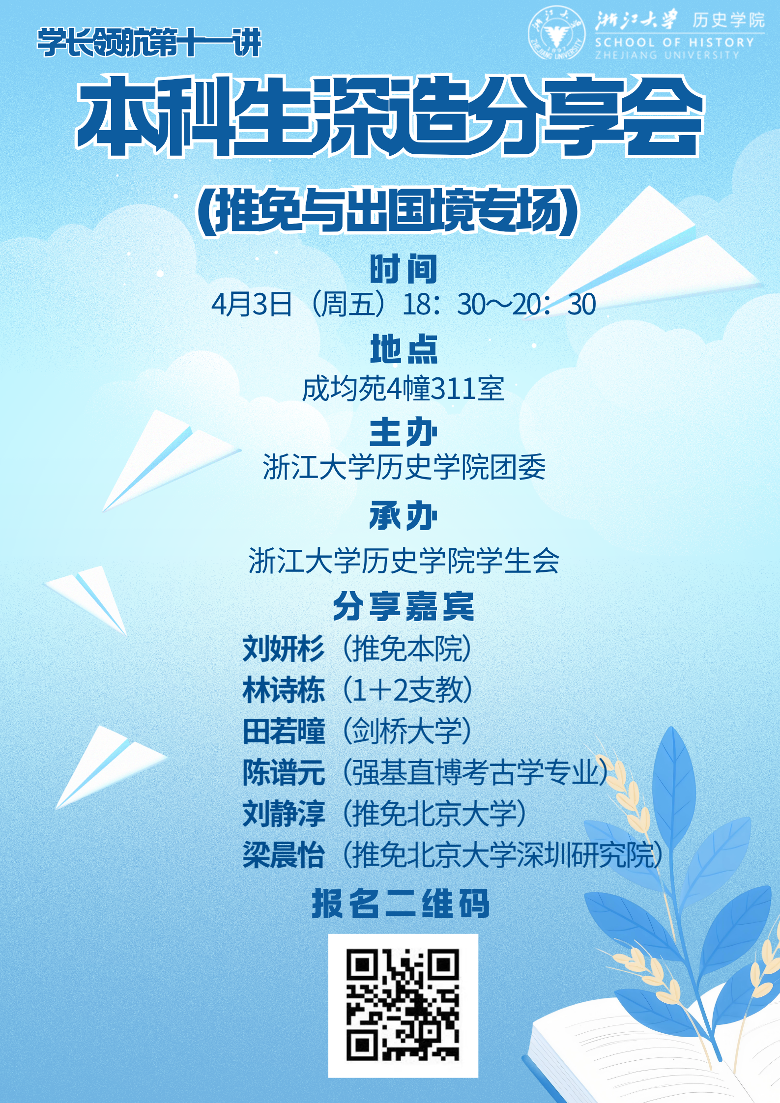 活动预告丨学长领航第十一讲:本科生深造分享会(推免与出国境专场)
